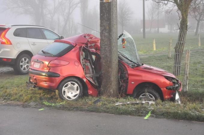 De ongevallen gebeurden zaterdagochtend in de Roesdammestraat in Avekapelle. Door het gladde wegdek botste een kleine personenwagen op een elektriciteitspaal. De bestuurder van het voertuig zat geklemd, de brandweer van Veurne moest ter plaatse komen om hem te bevrijden. De MUG-dienst van het ziekenhuis van Veurne kwam ter plaatse voor de eerste verzorging. De bestuurder werd afgevoerd naar het ziekenhuis van Veurne.