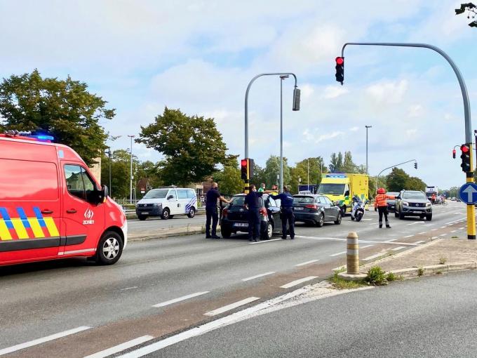 De bestuurder van een kleine personenwagen merkte te laat op dat het verkeer ter hoogte van het rode licht stilstond en reed achteraan in op zijn voorganger. Door het ongeval verliep het verkeer op de ring richting Kruispoortbrug wat moeilijk. De brandweer zorgde voor signalisatie. De politie deed de vaststellingen en regelde het verkeer. Een betrokkene werd ter controle naar het ziekenhuis overgebracht. (JVM)
