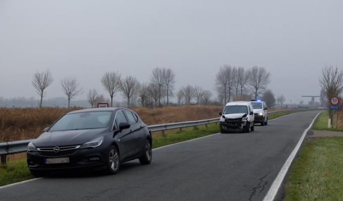 Een wagen die richting Alveringem reed, reed achteraan in op een voorligger. De aanrijding gebeurde ter hoogte van een inrit naar een boerderij. Beide wagens liepen door de aanrijding zware averij op. Het is nog niet bekend of er iemand gewond is.