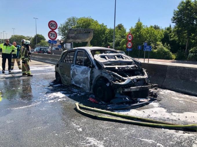 Vermoedelijk was een technisch defect de oorzaak van de aanrijding en de brand. Het voertuig was, ondanks de snelle interventie van de brandweer niet meer te redden en brandde helemaal uit. Ook een deel van de grasberm vatte door een brandstoflek vuur.