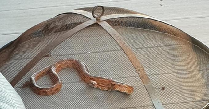 Op een terras van een huis in de Bissegemsestraat werd vrijdagnamiddag een korenslang gevonden. De poetsvrouw die buiten aan het werk zou gaan, ontdekte het dier.