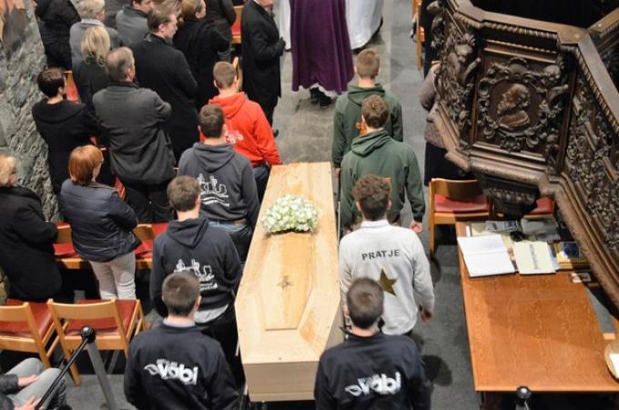 Op het einde van de homilie kwam de leerkracht aan het woord die vorig schooljaar godsdienstles gaf aan Sander. “We behandelden het moeilijke vraagstuk over leven en dood en toen liet ik jullie een tekst schrijven over hoe jullie na een plotse dood herinnerd zouden willen worden”, klonk het. “Sander, jij schreef onder meer dat je niet altijd de gemakkelijkste was thuis, dat je graag lachte en dat je ondanks het vele werk op de boerderij ook hield van plezier maken en een pintje drinken met vrienden. Hopelijk krijgen jullie na mijn dood nog het beste”, stond er ook geschreven. De pastoor riep de familieleden, vrienden en kennissen op om niet met hun gevoelens van verdriet te worstelen, maar erover te praten.
