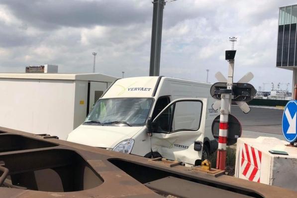 Zeebrugge / Ongevallen Zeebrugge / Ongevallen Goederentrein botst op bestelwagen aan overweg in haven Zeebrugge 26 november 2020