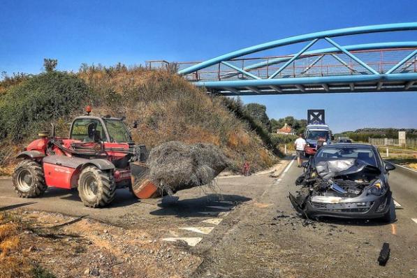 Oostende / Ongevallen Oostende / Ongevallen Auto knalt op landbouwvoertuig in Oostende 26 november 2020