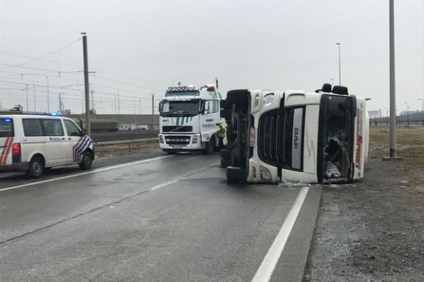 Zeebrugge / Ongevallen Zeebrugge / Ongevallen Brandstoftank van vrachtwagen gescheurd na aanrijding in achterhaven Zeebrugge 26 november 2020