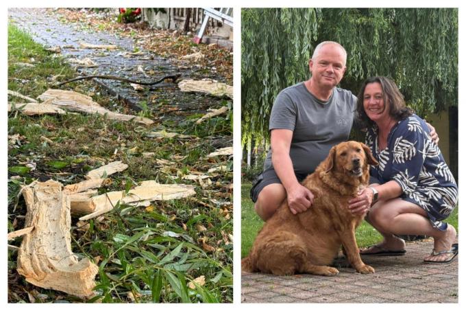 “Ze had enorm veel geluk”, stelt Franky. “Zij stond daar, op amper vier meter van die geraakte tak. We beseffen goed dat het bijna voorbij was. De brandweer zei het ook: ‘het is een heel groot mirakel dat Katrien nog bij ons is’. Onze hond Boomer zat op dat moment in de tuin en kon ook geroosterd zijn.”