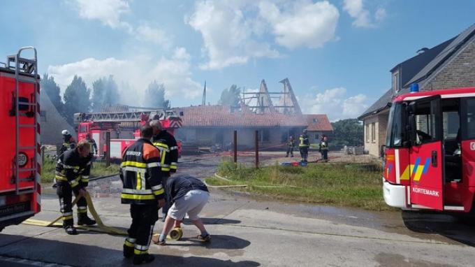 In de Hoogledestraat in Kortemark heeft een hevige brand zaterdag kort na de middag een volledige schrijnwerkerij in de as gelegd.