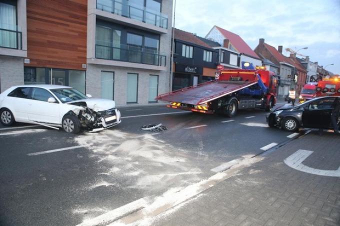 Bij een botsing tussen twee wagens zijn zondagmorgen in de Moeskroenstraat twee bestuurders gewond geraakt.