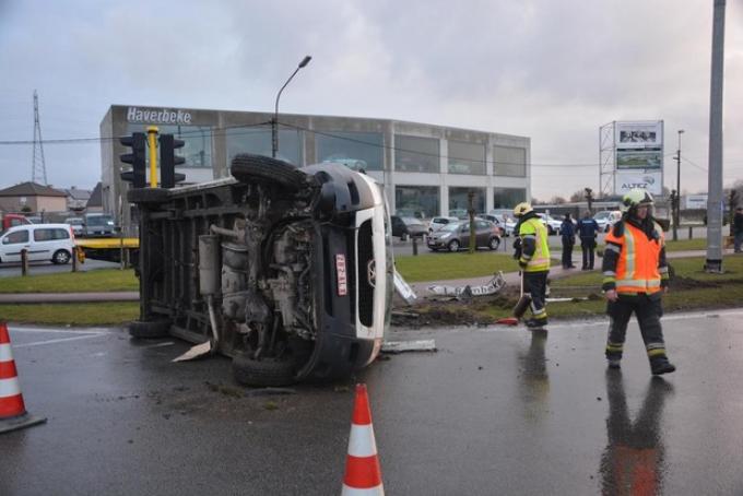 Het ongeval gebeurde rond 8.15 uur op het kruispunt van de Rijksweg met de Sint-Eloois-Winkelsestraat. Een kippenhandelaar verloor de controle over zijn stuur, ramde enkele betonblokken en verkeerspalen, om daarna met zijn auto over de kop te gaan en op zijn flank te blijven liggen. De gewonde chauffeur werd overgebracht naar het ziekenhuis maar verkeert niet in levensgevaar. De chauffeur uit Moorslede was op de terugweg naar huis nadat hij zijn ronde bij de slagers had gedaan. Het verkeer op de Rijksweg ondervond heel wat hinder. De politie kwam ter plaatse het verkeer regelen.