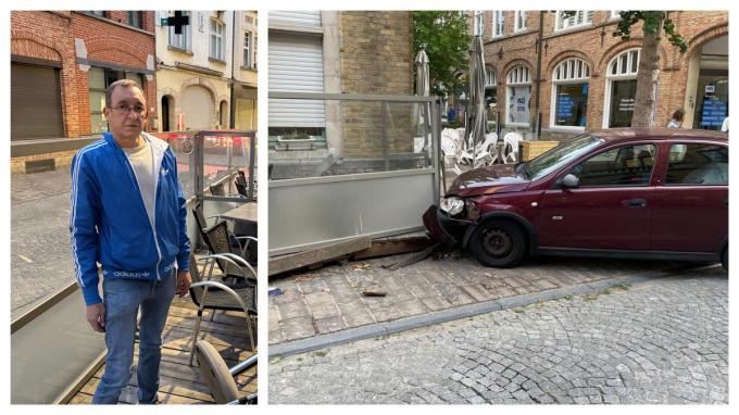 Het terras van volkscafé Sint-Sebastien bevindt zich in de Stationsstraat, ter hoogte van de hoek met de Sint-Sebastiaansstraat in centrum Ieper. “Ik had net mosselen besteld op restaurant, toen ik telefoon kreeg van mijn bovenbuur: er was iemand tegen het terras gereden en het was redelijk serieus. Ik ben direct afgekomen”, vertelt Miguel Mylle (52) die het café net drie maand uitbaat.