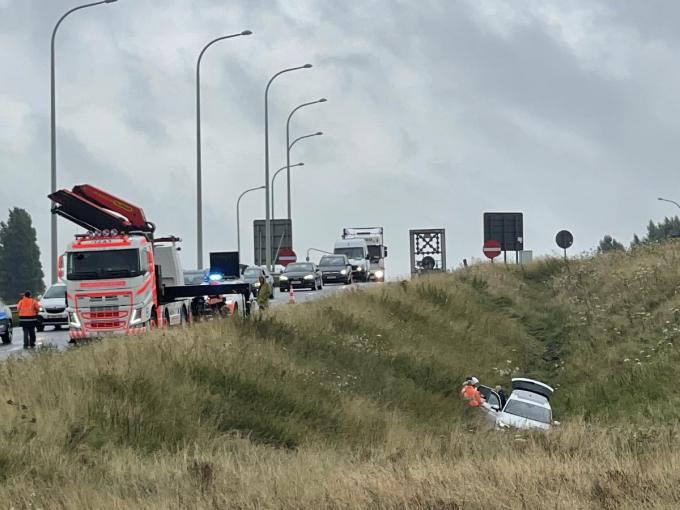 De auto belandde in de berm links van de afrit en kwam enkele meter lager tot stilstand.
