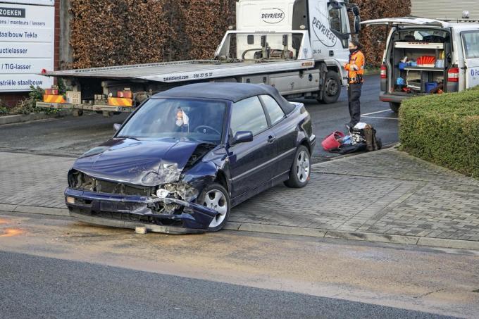 De bestuurster van de personenwagen, een cabriolet, kwam uit de richting van Zwevegem en trok via de Oudenaardsesteenweg richting centrum. “Ter hoogte van het metaalverwerkend bedrijf merkte ik een bestelwagen op die klaar stond om de parking te verlaten” klinkt het bij de 23-jarige, afkomstig uit Marke. “Was het een moment van verstrooidheid of was de chauffeur verblind door iets, ik weet het niet. Plots reed hij de parking af dwars over de rijbaan. Ik ben nog vol in de remmen gegaan maar kon de aanrijding onmogelijk nog vermijden. Ik reed vol in de zijkant van de bestelwagen en we kwamen beiden voor de parking tot stilstand.”