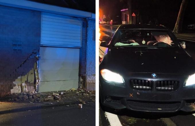 In Wervik is een wagen vrijdagnacht tegen de gevel van een huis beland. De 32-jarige bestuurder was onder invloed van alcohol en drugs, verwijderde de nummerplaten en probeerde nog te vluchten.