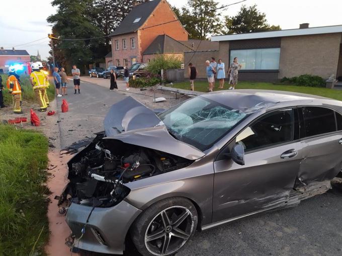 De Mercedes kwam tot stilstand in het midden van de straat. De bestuurder kon zelfstandig uit zijn voertuig stappen, maar werd ter controle overgebracht naar het ziekenhuis. Zijn Mercedes is rijp voor de schroothoop.
