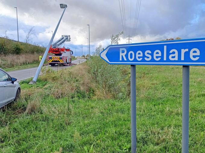 Doordat die dreigde op het wegdek te vallen besloot de politie om de oprit naar de Rijksweg tijdelijk af te sluiten. De brandweer en een medewerker van Fluvius werden ingeschakeld om het probleem met de verlichtingspaal op te lossen.