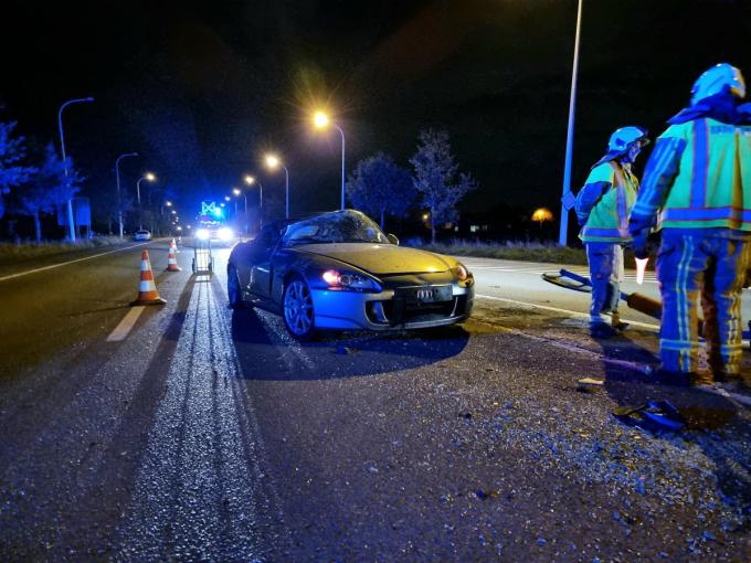 Hij raakte de boordsteen van de middenberm, ging overkop en strandde in tegenovergestelde richting op de rijweg. Gezien de impact mag het een wonder heten dat de jongeman slechts lichtgewond raakte.