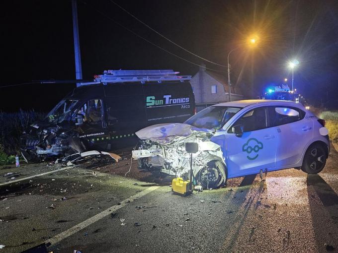Beide wagens raakten zwaar beschadigd en de bestuurder van de bestelwagen raakte lichtgewond. Aan de staat van zijn wagen te zien, bleef wellicht ook de andere automobilist niet ongedeerd, maar hij wou niet wachten op de hulpdiensten.