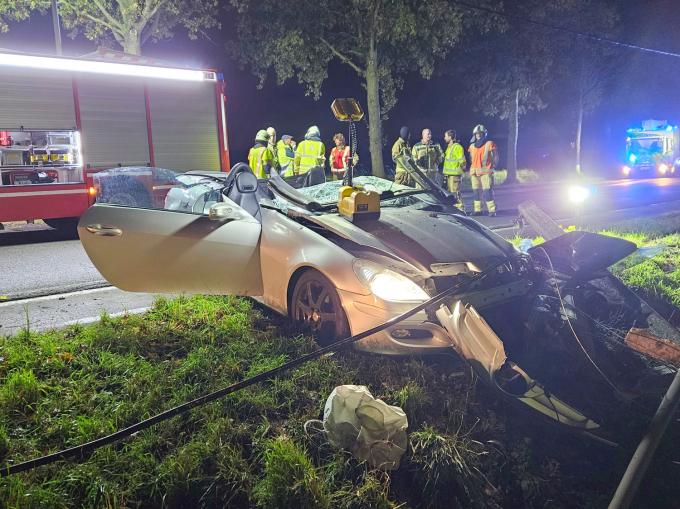 De man dwarste de volledige rijbaan en eindigde aan de overkant van de weg met een enorme klap tegen een betonnen verlichtingspaal. Zijn Mercedes was zwaar gehavend en de bestuurder zat vast in zijn voertuig. De brandweer kwam hem met spoed bevrijden en verwijderde een deur van de wagen.