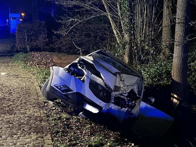 Beide jongemannen zijn vrienden en zouden eerder op de avond een andere vriend in de buurt bezocht hebben. De politie voert nu verder onderzoek naar de omstandigheden van het ongeval. Vast staat wel dat vooral de bestuurder enorm veel geluk heeft gehad dat hij niet bewusteloos raakte toen hij in het water van de gracht terecht kwam. Door het ongeval was de Houtlandstraat plaatselijk even volledig versperd maar door het nachtelijk uur was er nauwelijks verkeershinder. De SsangYong werd zwaar beschadigd en werd getakeld. (JH)