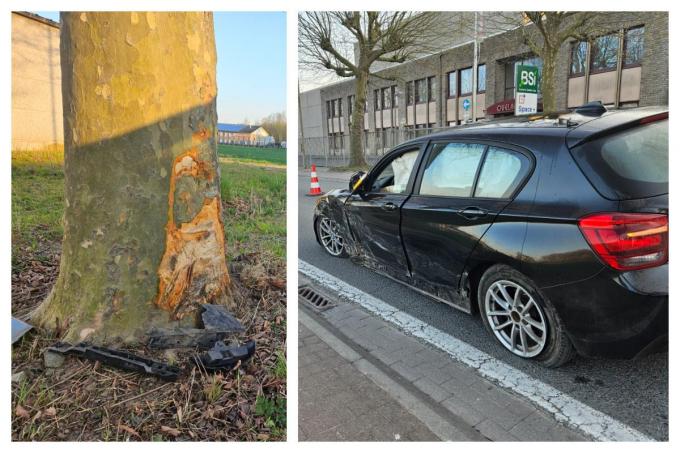 Een frontale aanrijding met de boom werd nipt vermeden, maar de BMW raakte wel zwaar beschadigd ter hoogte van het voorwiel en het portier aan de bestuurderskant. Ook de airbags gingen af. Even werd gevreesd dat de vrouw door de klap gekneld zat in haar wagen, maar bij aankomst van de brandweer was ze met behulp van ambulanciers al uit het wrak geklauterd.