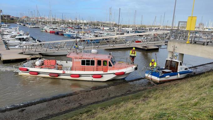 Het bootje dat zonk, maakte al even water en zonk vrijdagmorgen. Door de hevige kracht naar beneden toe bezweek een tussenschot van het ponton echter. Het gedeelte brak af en kwam boven het gezonken schip te drijven. De brandweer van Nieuwpoort werd opgeroepen om olie en diesel dat aan het wateroppervlak verscheen, door het bootje, in te dammen. De berging van het sportvissersbootje zou vrijdagnamiddag gebeuren.