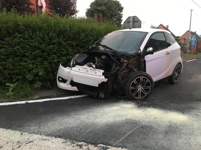 Een Aixam die vanuit Poperinge kwam, wou de weg dwarsen, maar maakte een inschattingsfout en werd daarbij gegrepen door een Citroën C2.