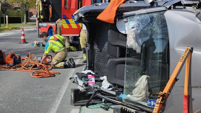 In Zonnebeke moest een auto donderdagnamiddag plots uitwijken bij het inhalen van een tractor. De wagen belandde op z’n zijkant en de 25-jarige bestuurster werd bevrijd door de brandweer.