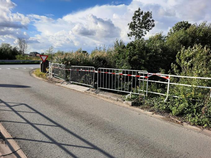De technische dienst van de stad Lo-Reninge plaatste tijdelijk nadarafsluitingen met roodwit lint.