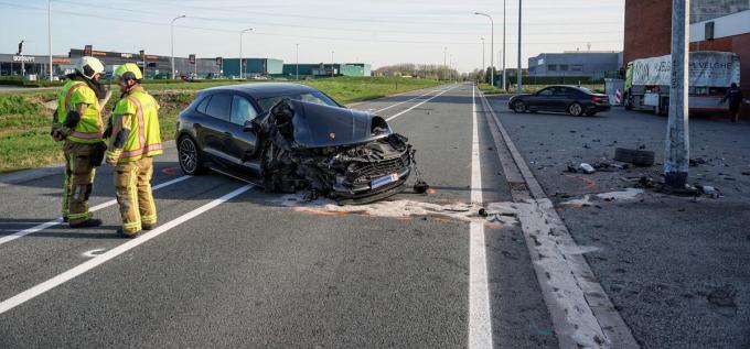 Even voor 9 uur reed een dame, aan het stuur van haar Porsche SUV, komende uit de richting van de R8 over de Noordlaan. Ter hoogte van het kruispunt met de Industrielaan liep het echter grondig fout. Om een nog onbekende reden week ze af van haar rijvak, stoof ze over het kruispunt en kwam er ongenadig hard tegen een verlichtingspaal terecht.