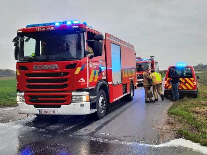 In de Westveldweg in Koekelare moest de brandweer woensdagmiddag een oliespoor opruimen.