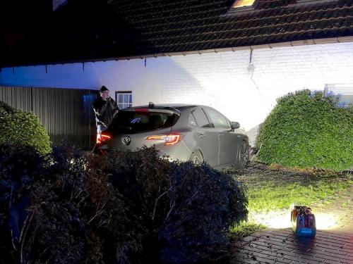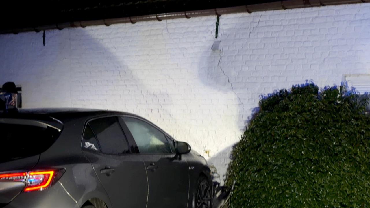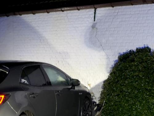 De gevel van het huis vertoonde een barst maar structurele schade was er niet. Omdat de wagen begon te roken werd de brandweer opgeroepen, maar van brand was geen sprake.