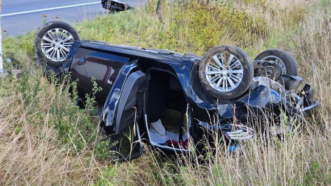 Bij Ieper belandde een wagen dinsdagnamiddag naast de Noorderring en ging over de kop. De 75-jarige bestuurster werd zwaargewond overgebracht naar het ziekenhuis.