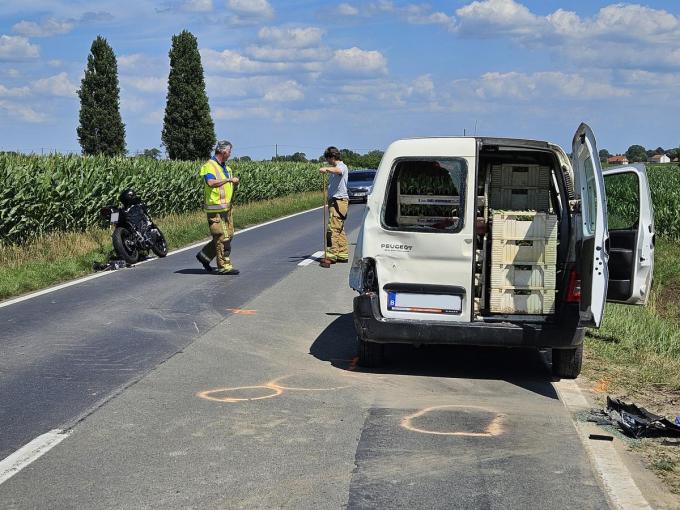 De jonge motorrijder reed rond 12.30 uur op een recht stuk van de Meulebekesteenweg richting Dentergem. Zo’n halve kilometer na een flauwe bocht stond de bestelwagen van een landbouwer geparkeerd op de rijweg. Waarom is niet precies duidelijk, mogelijk leverde de man materiaal voor op het aanpalende veld.