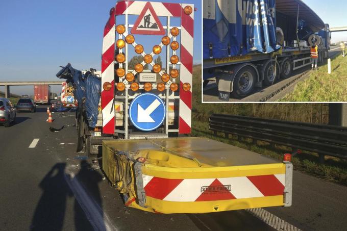 “Ik zag het mobiele stootkussen en probeerde met een manoeuvre het nog te ontwijken, met alle gevolgen vandien. Met de rechterkant van mijn cabine raakte ik het stootkussen, ik ging vol in de remmen maar ook mijn oplegger werd opengescheurd. Een deel van de inhoud, rollen met aluminium, werd zo over de autosnelweg verspreid.”