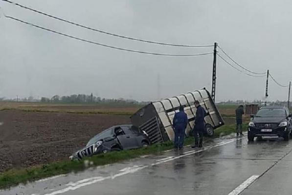 Alveringem / Verkeersongeval Alveringem / Verkeersongeval Geen gewonden nadat jeep met paardentrailer in gracht eindigt 6 april 2022