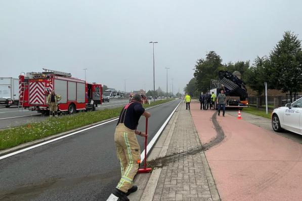 Brugge / Verkeersongeval Brugge / Verkeersongeval Remmen van vrachtwagen vatten vuur op Expresweg in Sint-Andries 13 juli 2021