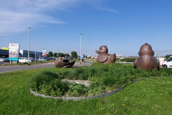 Middelkerke / Verkeersongeval Middelkerke / Verkeersongeval Bestuurder onder invloed rijdt dure bronzen eend op rotonde aan stukken 15 juli 2021