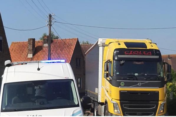 Diksmuide / Verkeersongeval Diksmuide / Verkeersongeval Vrachtwagen rijdt zich vast in wegversmalling 22 juli 2021