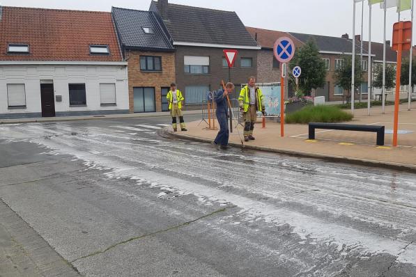 Aartrijke / Verkeersongeval Aartrijke / Verkeersongeval Aalkar laat spoor van vloeibare mest achter alvorens juniorenkoers moet passeren 24 juli 2021