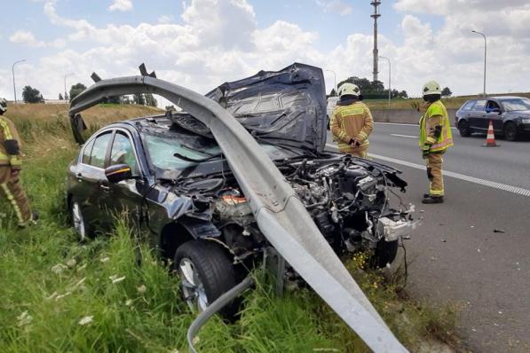 Lichtervelde / Verkeersongeval Lichtervelde / Verkeersongeval BMW knalt tegen vangrail op autosnelweg E403 29 juli 2021