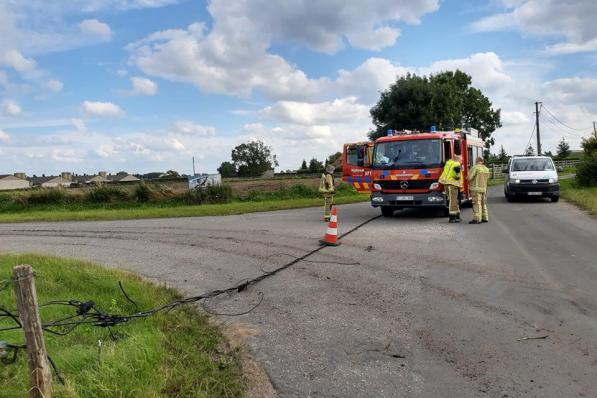 Lichtervelde / Verkeersongeval Lichtervelde / Verkeersongeval Landbouwer raakt elektriciteitskabels, buurt even zonder stroom 29 juli 2021