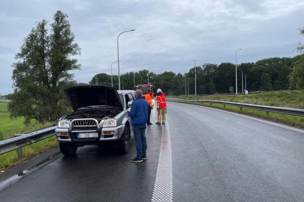 Nieuwpoort / Verkeersongeval Nieuwpoort / Verkeersongeval Auto begint te slippen door nat wegdek en belandt gekanteld in middenberm 21 juni 2021