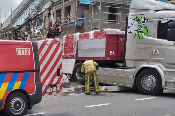 Otegem / Verkeersongeval Otegem / Verkeersongeval Gescheurde dieseltank zorgt voor hinder in Otegem 9 juli 2021