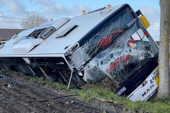 Torhout / Verkeersongeval Torhout / Verkeersongeval Bus De Lijn belandt in gracht, passagier lichtgewond 15 maart 2021