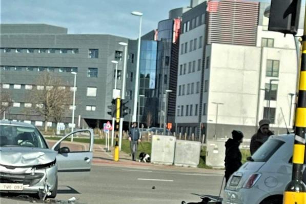 Oostende / Verkeersongeval Oostende / Verkeersongeval Twee lichtgewonden bij aanrijding tussen motorrijder en fietser op druk kruispunt 29 maart 2021