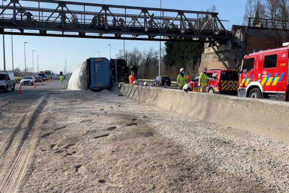 Jabbeke / Verkeersongeval Jabbeke / Verkeersongeval Vrachtwagen die lading verliest na klapband veroorzaakt chaos op E40 25 maart 2021