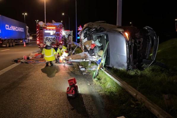 Brugge / Verkeersongeval Brugge / Verkeersongeval Auto belandt op zij op verkeerswisselaar E40-E403 14 december 2020