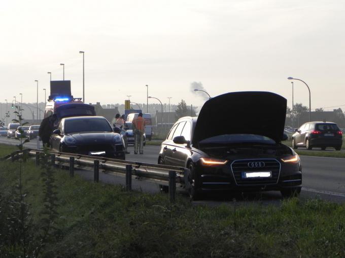 Een signalisatiewagen werd wel ingeschakeld om de plaats van het voorval te beveiligen. De auto moest getakeld worden. (BF)