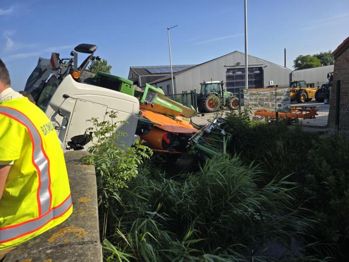 “De bestuurder van de machine wou het bedrijf verlaten, maar het linker achterwiel raakte van het brugje waarna de machine kantelde”, zegt Karen Passchyn, inspecteur van politiezone Spoorkin. “In de eerste melding was sprake van een drenkeling, maar toen we ter plaatse kwamen, werd de persoon al verzorgd door de mensen van de ambulance en MUG. De bestuurder was aanspreekbaar en klaagde over pijn aan de rug. De plek rond het ongeval hebben we volledig afgezet voor het verkeer.”
