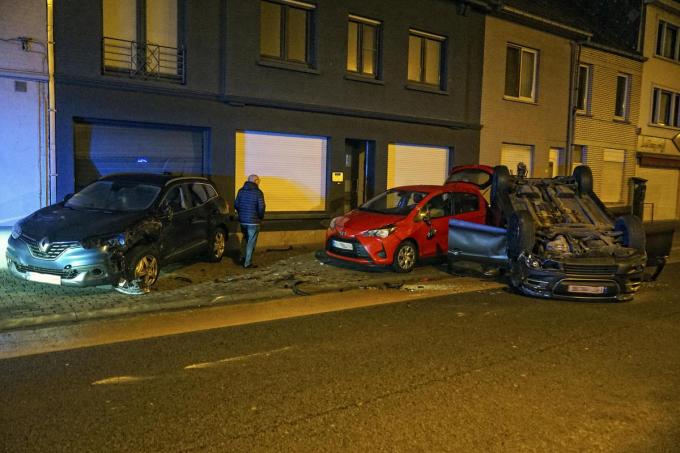 Vrijdagavond, iets na 21 uur, weerklonk een luide knal in de Kortrijkstraat. Toen de geschrokken bewoners van de straat poolshoogte gingen nemen, werden ze geconfronteerd met een heuse ravage. Een auto, een stevig uit de kluiten gewassen SUV, kwam er uit de richting van het Leopoldplein gereden toen hij, om een nog onbekende reden, de controle over het stuur verloor. Hierbij ramde hij twee geparkeerde auto’s, waarbij één van die wagens door een garagepoort werd geduwd. De brokkenpiloot kwam uiteindelijk ondersteboven tot stilstand en bleef, gedesoriënteerd, in zijn wagen zitten.